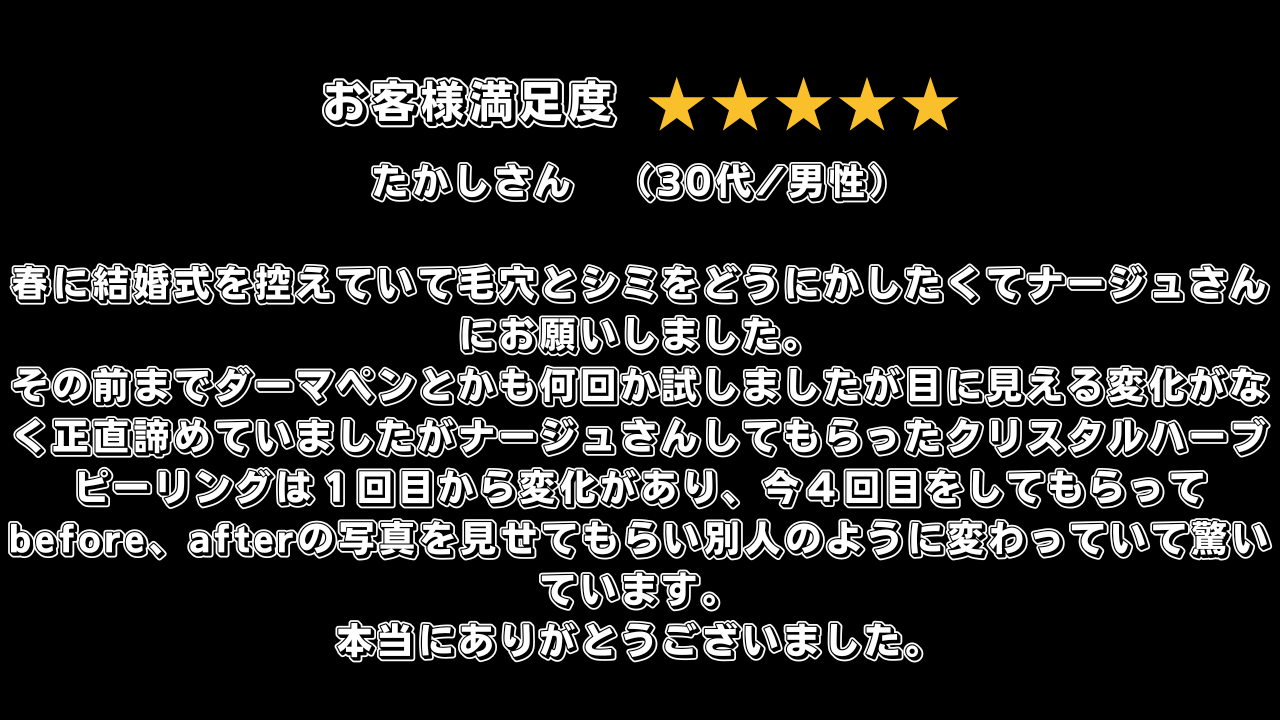 「美容専門ナージュクリニカルサロン」では、お肌のお悩みを解決して、愛される輝く肌へ導きます。幸せな気持ちに包まれながら、施術を受けることで、心も満たされる喜びを感じていただけること間違いありません。お客様の笑顔を引き出すお手伝いをさせていただきます。是非、当店でお肌のトラブルを解消し、幸せな美肌を手に入れてください。